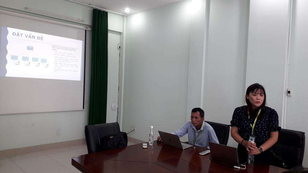 ThS. Đinh Thị Tâm đại diện nhóm thực hiện đề tài trình bày báo cáo trước Hội đồng nghiệm thu.